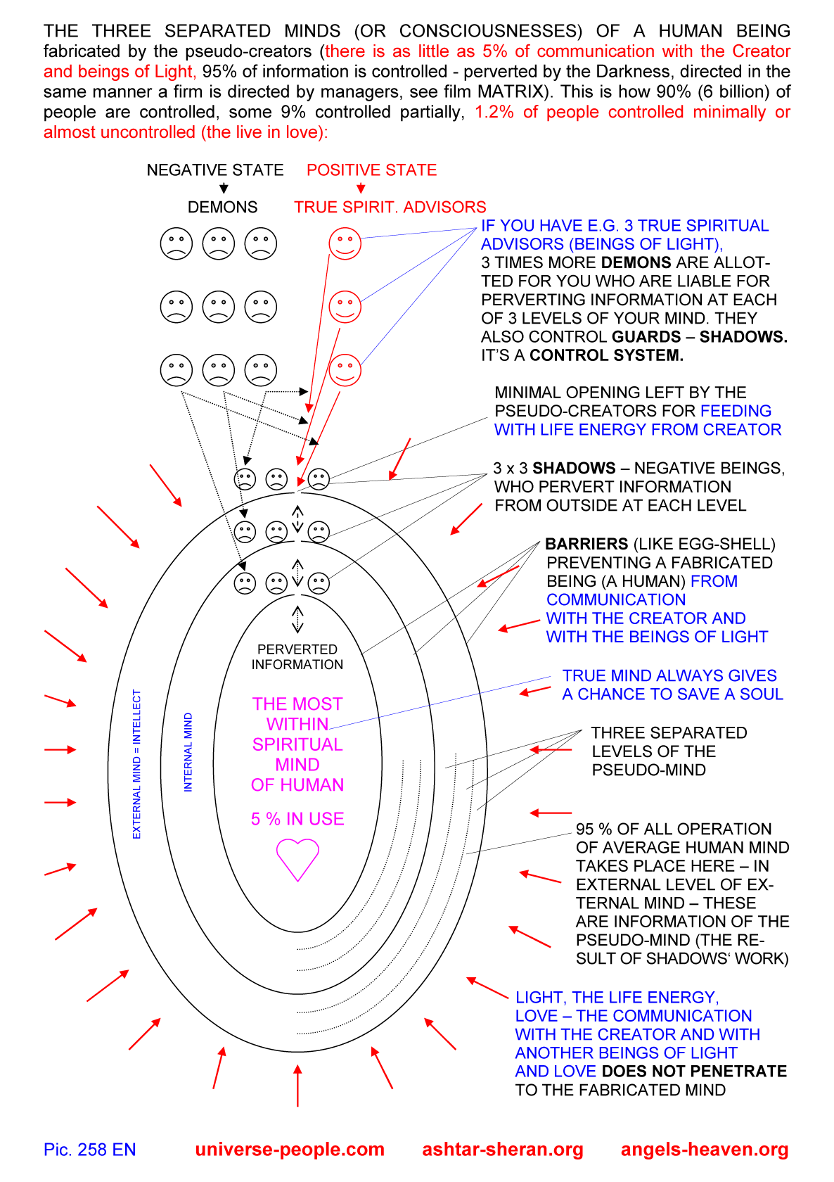 Three separated minds of a human being fabricated by the pseudo-creators True sentient mind created by the Creator Structure of the zone of displacement - categories of beings