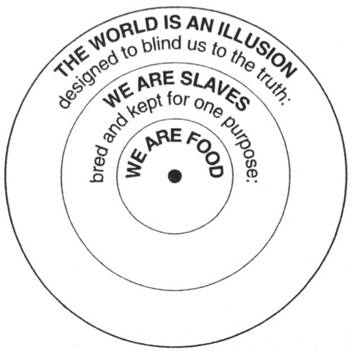 3 Humanity is a food source, and the world as we know it is simply the elaborate, intricate mechanism by which we are distracted from this fact: the world is a farm, and we are the livestock. All our dreams, then, are dreams of meat, on its way to being eaten.