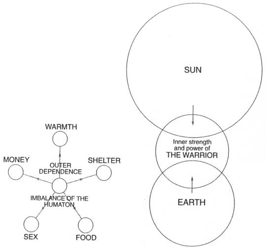 In Castaneda's in-depth analysis (it spans ten books in all), don Juan Matus, his teacher, explains that the warrior's way is necessary to the practice of sorcery, and that sorcery is the means to becoming a man of knowledge, or seer (one who sees). Absolute sobriety and self-discipline are indispensable, he tells us, if the warrior is not to be fatally overwhelmed by what he sees. The warrior's way (which Castaneda calls impeccability) is essentially that of the hunter-gatherer extended to the energetic universe: the warrior hunts and gathers energy. This energy is needed in order to access new realms of perception, or in don Juan's terms, to 'stop the world,' or move the assemblage point (see Glossary). Don Juan assures Castaneda that the practice of sorcery is not an end in itself, but rather a means for the warrior to assemble a new interpretation of the world, thereby fully realizing that reality as we know it is just an interpretation. As such, it is subject to the individual's will, and to the act of perception itself. The warrior who becomes a sorcerer can thereby pit the sorcerer's interpretation against the common man's interpretation, and so weasel between the two. This leads to something that has been termed TOTAL FREEDOM.