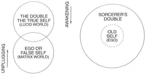 The double is the matrix sorcerer's other self, his real body existing in the real world, trapped in the pod, dreaming his matrix self (residual memory) into being. Once a matrix warrior unplugs and so liberates his body, he has accessed his double and so become a matrix sorcerer. He is now able to exist in two places at once, in both dream and reality, and to exercise superhuman powers.